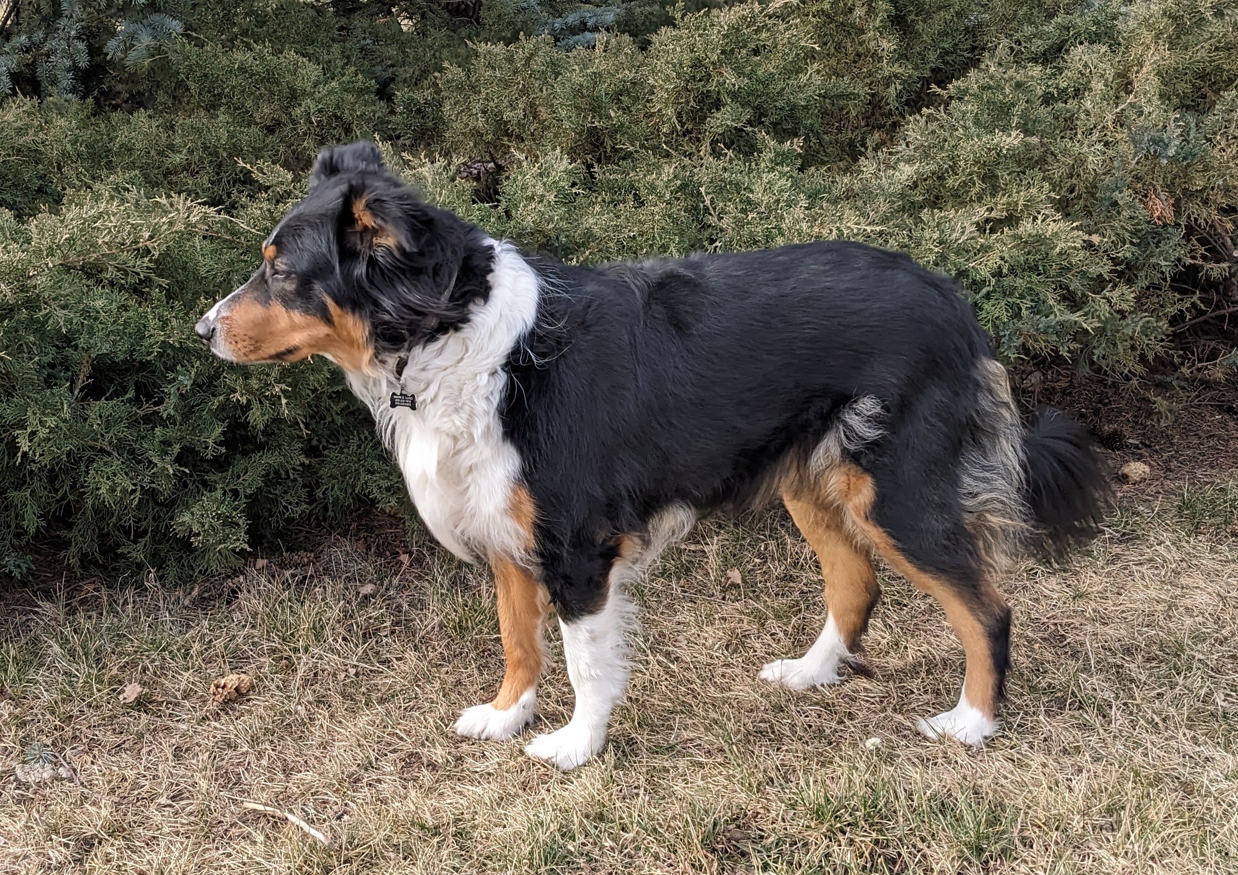 - She is appropriately protective and has the English Shepherd guarding behavior, both to people and place – she does not want a fast approach from unknown men and gives appropriate warning cues
